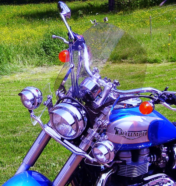 Eddy, I like that. That is where I thought that they should be mounted (on the upper fork shrouds). Also, do you have yours rotated to be slightly in front of the windshield, or could I rotate the brackets to do that? If so, that might keep the wind/turbulence from coming from between the forks and up over the tank.