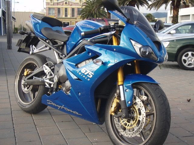Yesterday my ferral mate Possum brought himself one of these... His first ever new bike, gonna be his race bike, he did very well in his first season of racing, most improved novice and has got the attention of a lot of the top NZ riders, especially as he's been thrashing around on a stock BMW K100 that's 23 years old... He hasn't owned a triple since the 80's but his first love has always been Triumph... This bikes proberly got an extra 25-30 more HP than the old K100 and he weights only 66kg so I'm really looking forward to him getting on the track and kicking some Kiwi butt...