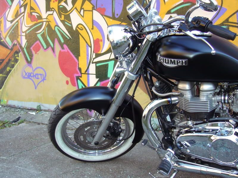 Wow. I had a feeling it was going to be difficult. I didn't think about the fork shroud issue. So you cut a chunk of the fender out where it hit? I have a 120 tire also. Yours looks awesome, but since we live so close I can't get the same one!
