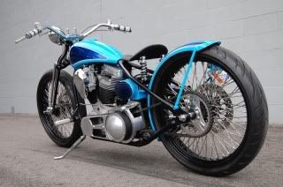 It's awesome looking but for a fraction of the money I'd rather do the LC Fabrications hardtail conversion to a standard Bonneville and figure out what kind of bearings I need to mount up a springer front end (preferably leaf-springer).