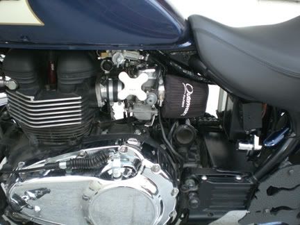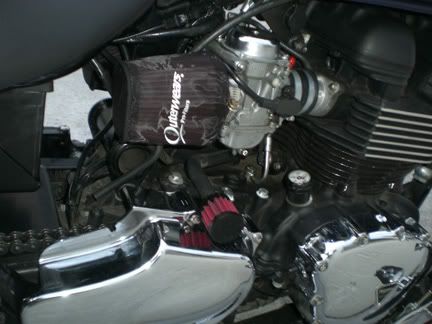 Wow...sounds like you've gotten a lot of work in lately. I'm glad it sounds like you've got your carb issues under control now. The bike looks great with the bat relocation. What is the x shaped object over the carb in the second pic?