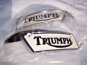 Man, am I a happy camper today! I got this for what I think is an unbelievable price, ship included. Gas Tank Badge Set 1969 thru 1979 ForTriumph Triumph tank badge L&R w/ 4 pcs screws /painted Item condition: New Sold For: US $61.99 Shipping: FREE shipping US Postal Service Parcel Top-rated seller pbprotriu ( 4066) 99.9% Positive feedback Visit store: CLASSIC TRIUMPH (I think I'm even feelin' better today than Mountainman! Now THATS sayin'somethin')