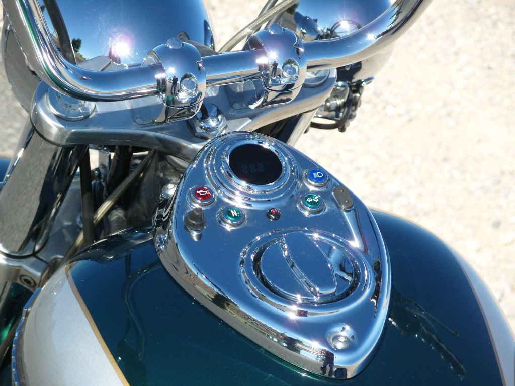 Absolutely beautiful, love all the details. And the photography and scenery is just really nice! The electronic speedo in the dash gives the whole front end a clean custom look. Are those Harley bars? Congratulations, well done.