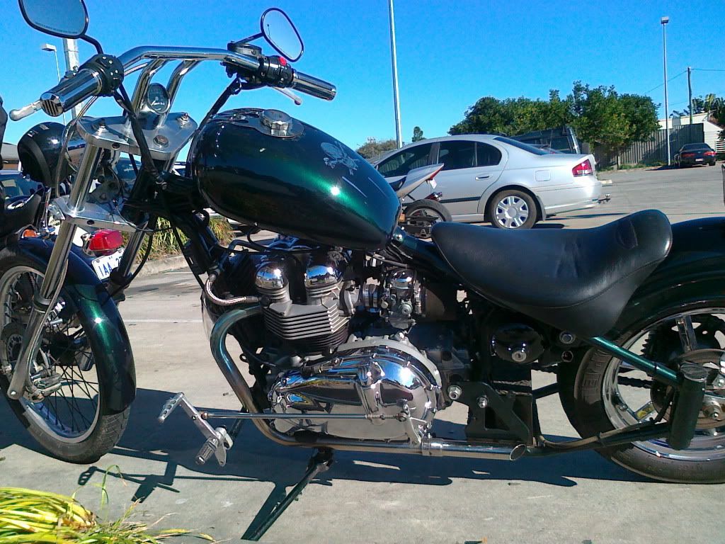 Love it!  Stick some girder forks on it and you've got the outcome of my America mating with my Z750 chop