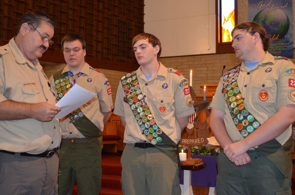 1st row Eagle, Steven. 2nd row, Eagle candidates Travis and Dylan.