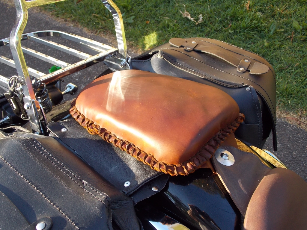 A P-Pad that may never get sat on. Thats what I have made. Its not comfy at all. Its just there for show. Took several goes at getting the leather cover right. What started out as smokey grey in colour leather is now medium brown. My fingers are stained brown from the dye. I had riveted the leather to the seat base. That did not work. I had too many folds as the leather went around the curves of the seat. I had intended to lace the leather cover on. Should have done that in the first place. The colour does not match my solo seat. No way was that going to happen looking at colour swatches on a computer screen. I like what I have done. Maybe I should do a leather working course.