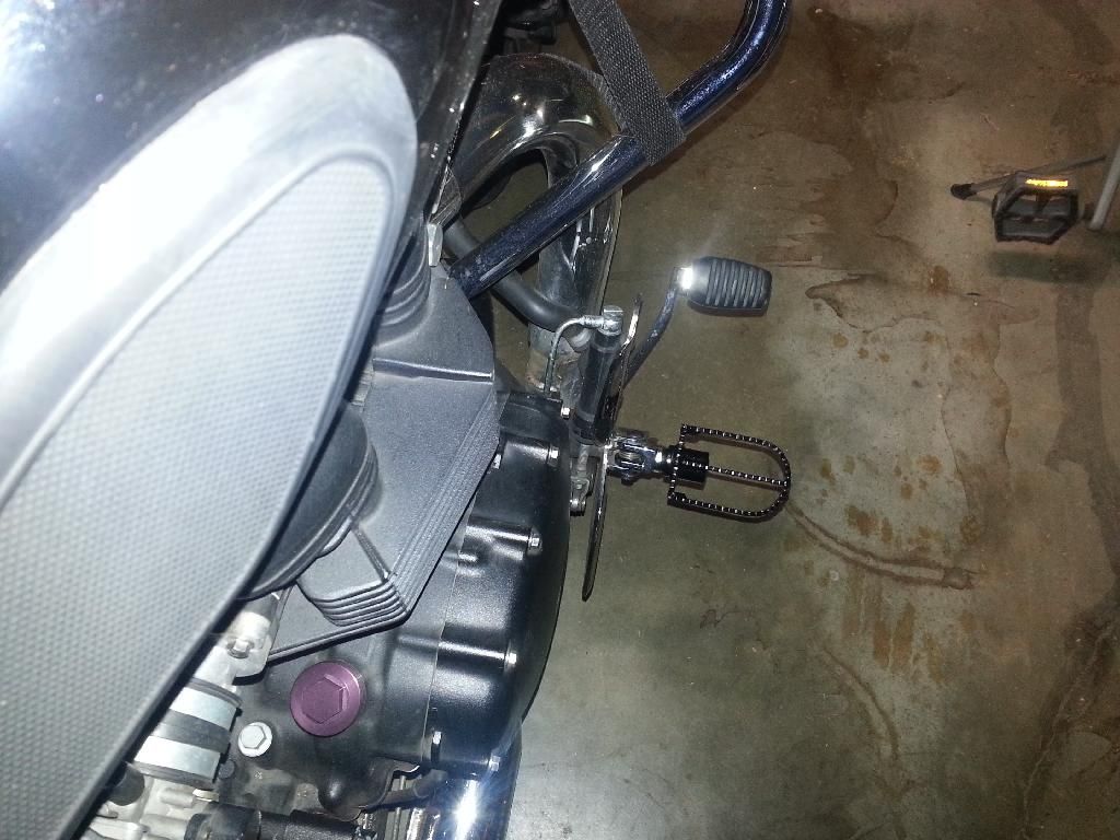 My one project that has worked out with no hitches has been adapting the Burly Brand Footpegs to my bike. I ordered some HD footpeg adapters from Fast Eddy. I assumed since these were for an HD they would fit right into the adapters like the Kuryaken pegs do.....WRONG! The adapter does fit inside the peg a ways, so I went to Ace Hardware and got the exact same type of hex head bolt to screw right into the adapters. They appear to be pretty dang sturdy, even though the bolt to the adapter is a bit smaller. And they have a bottle opener on the bottom of them.