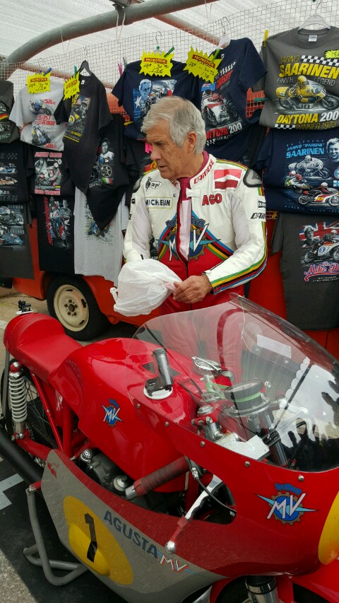 He was out here for the weekend. Went round the track 9 or 10 times. Was great to see my childhood idol up close and personal after so many years. I was best buddies with his head mechanic's (at MV Agusta) son which got me started on motorcycles at the ripe old age of 15. This was afrer both Ago and he had left MV. It was 'Ago this', 'Ago that' by his dad all the time, hard not to get indoctrinated.