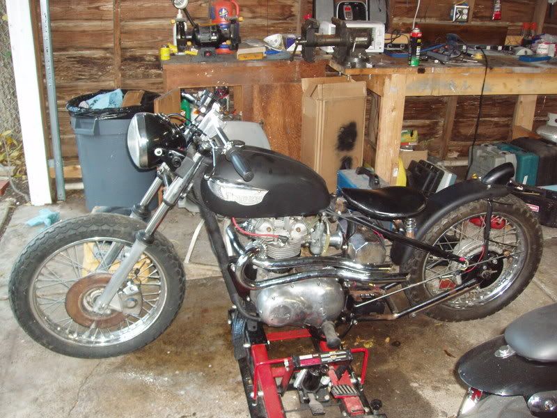 Nice bikes guys. I too am building a '69 TR6R, I have most of the fabbing done. I just need to finish welding a few things on it, paint it, and then start to wire it up. I was hoping to finish it this winter, but now I'm not so sure I'll be able to. I still can't lift anything over 10# so that means opening the garage door is out.